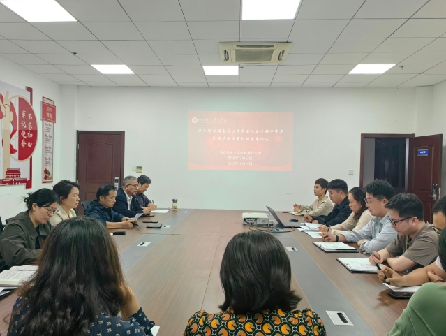 10 月 14 日下午,马克思主义学院直属党支部召开理论学习中心组会议,深入学习领会习近平总书记关于铸牢中华民族共同体意识的重要论述以及习近平总书记在庆祝中华人民共和国成立 76 周年招待会上的重要讲话精神。会议由马克思主义学院直属党支部副书记王星飞主持,全体党员教师参加。