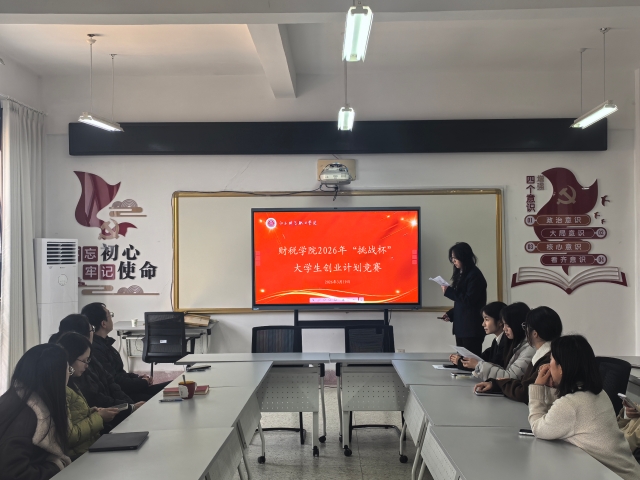 为深入贯彻科教兴国战略,激发青年学子创新热情,3月19日下午,财税学院2026年“挑战杯”大学生创业计划竞赛院赛在学院会议室成功举办。本次赛事以“创新驱动发展,实践铸就梦想”为主题,聚焦财税专业的前沿动态与社会应用,引导学生以专业智慧服务国家治理现代化。