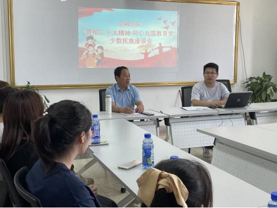 为深入学习领会习近平总书记关于加强和改进民族工作的重要思想,筑牢团结奋斗共同思想政治基础,6月8日下午,金融学院在行健楼512会议室组织开展“贯彻党的二十大精神·同心共筑教育梦”暨少数民族学生座谈会活动。本次活动由辅导员魏玉东老师主持,金融学院各少数民族共20余名同学参加,金融学院党总支书记李根宝到场与同学们交流座谈。