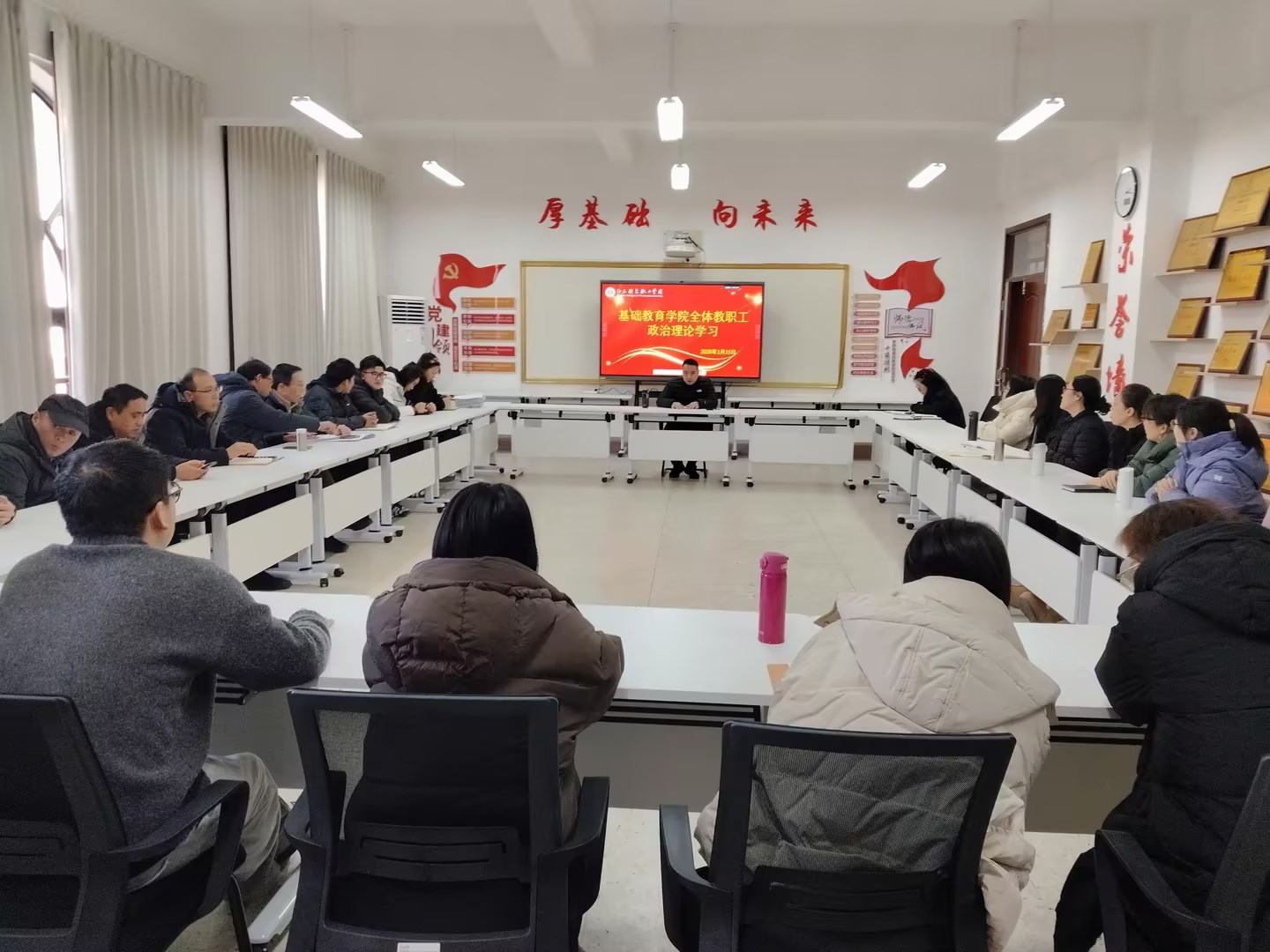 1月14日下午,基础教育学院在行健楼510会议室召开全体教职工学习会,深入学习习近平总书记在二十届中央纪委五次全会上的重要讲话精神。会议由基础教育学院院长汤景瑞主持,全体教职工参加。