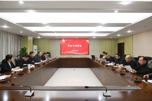 为明确新学期目标任务、统筹推进各项学生工作落地见效,3月10日下午,我校在行政楼304会议室召开春季学期第一次学生工作例会。党委副书记、院长费小岩出席会议并作工作部署,党委委员、副院长张绍光主持会议。党委宣传部、学工处、安保处、团委相关负责人,各学院党总支书记、学工办主任及团总支负责人参加会议。