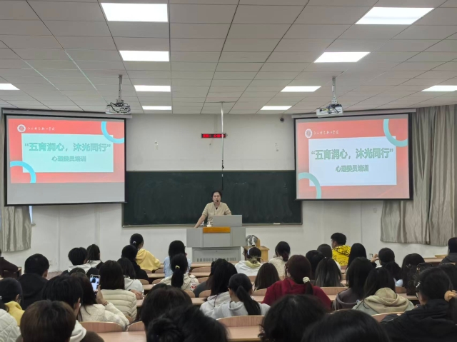 为强化2025级班级心理委员的专业素养与履职能力,完善“学校—学院—班级—宿舍”四级心理健康防护体系,2025年11月,我校心理健康教育中心以“五育润心,沐光同行”为主题,组织开展2025级心理委员培训会,全体2025级班级心理委员参会。