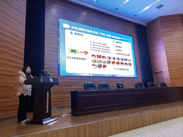 在成果展示环节,8位教师代表分享了极具启发性的AI教学应用案例。王语嘉演示了如何用AI智能体开发“记账小游戏”、生成动态思维导图与知识视频,帮助学生快速搭建“结构化”知识框架,提升学生学习兴趣;孙丽俊则以证券投资学课程为例,阐释了AI驱动教学范式变革的路径与实践,展示了技术如何重塑课堂互动与知识传递方式;陆苗现场演示了多款AI工具在学情分析、课件制作等方面的应用,凸显了AI在提升教学效率与精准度方面的潜力;武倩、刘永智、王金铭、朱岚、汤思娣等也分别从管理学基础、经济法、高职英语、平面设计等课程出发,展示了AI在个性化教学、资源生成、过程性评价等方面的创新应用,为跨学科教学提供了可复制的实践范式。
