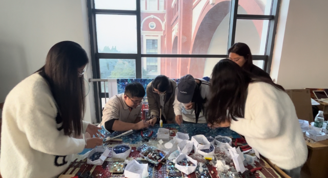 本次课程是学院青年夜校的首场教学活动,课程设置围绕“学科跨界+实践体验”的定位展开。活动现场,桌面整齐配备马赛克彩块、尖嘴钳、专用粘合工具及创作底稿等物料,学员们按照操作规范,依次开展马赛克碎块切割、色彩排布、固定粘合等步骤,在实践中完成装饰画的基础创作环节。整个过程中,学员们专注于物料拼接与细节调整,课堂秩序有序,实践氛围浓厚。